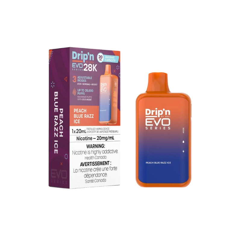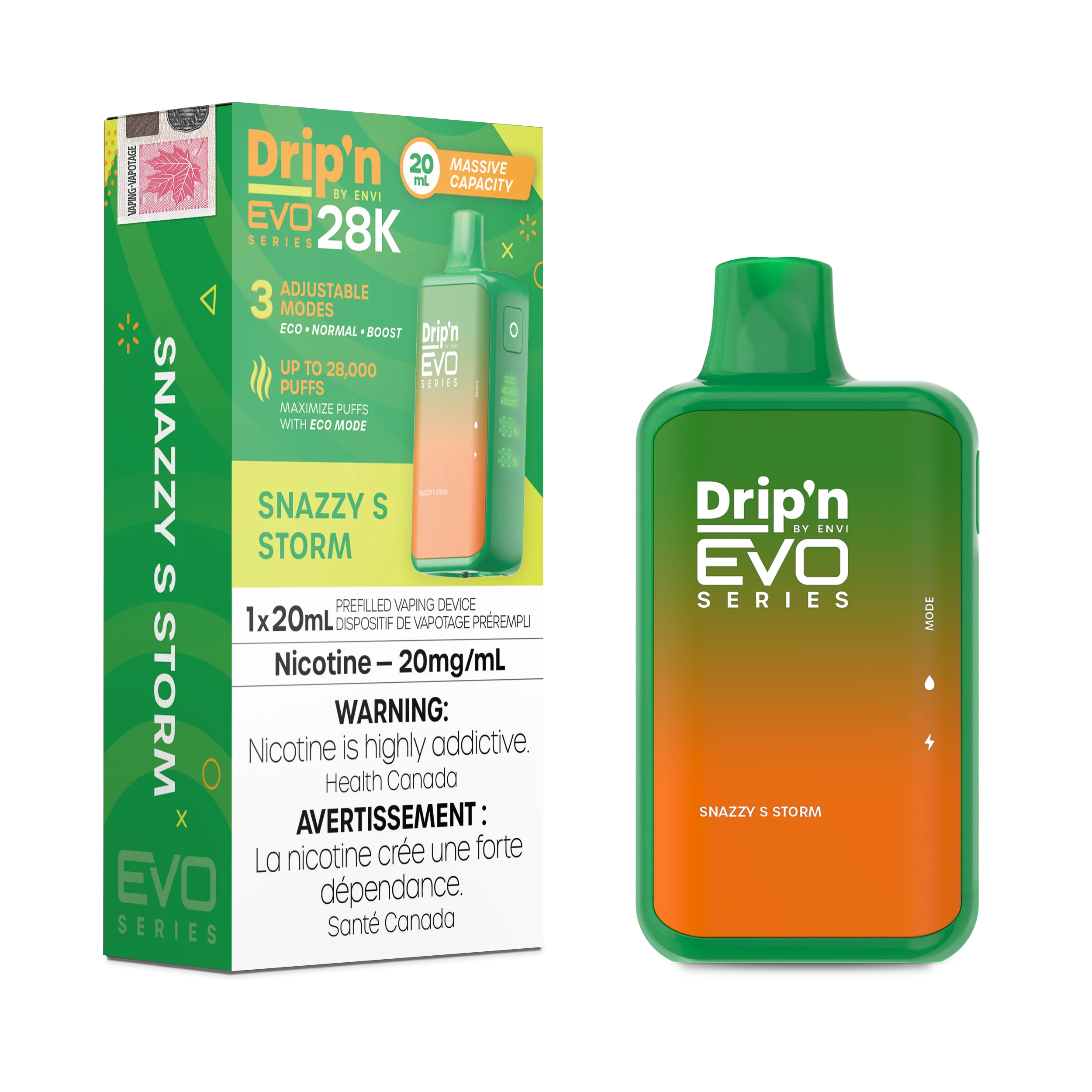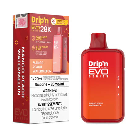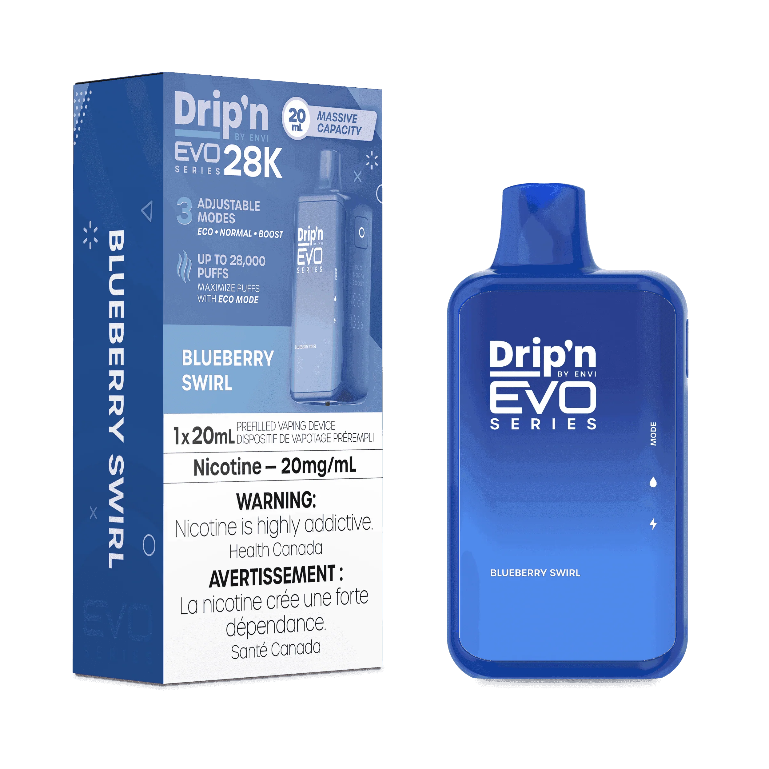 Experience the pinnacle of vaping innovation with the Drip'n by Envi EVO Series 28K Disposable Vape. Designed for Canadian vapers seeking longevity and rich flavour, this device offers up to 28,000 puffs, customizable power modes, and a user-friendly display for optimal control.