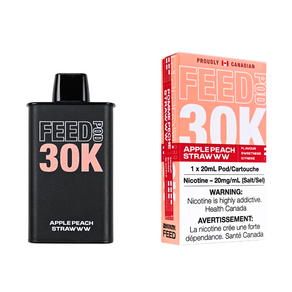 - Apple Peach Strawww Feed Pod 30K – A triple-fruit dream. Juicy apples, mellow peaches, and sweet strawberries collide for a smooth, all-day vape.