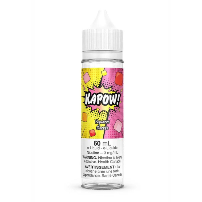 Kapow Freebase Juice - Squares offers a nostalgic and mouthwatering experience with its perfect blend of sweet watermelon and chewy candy squares. This e-liquid captures the essence of a classic treat, delivering a delightful balance of fruity flavors that dance on your taste buds.