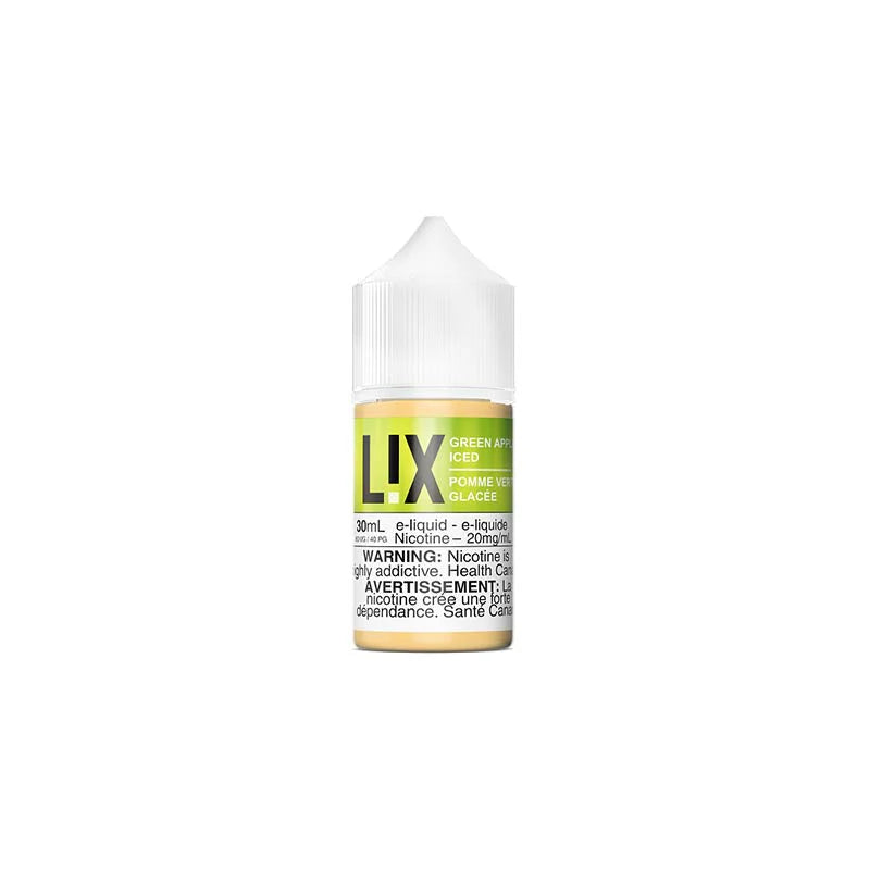 LIX Salt Juice – Green Apple Ice delivers the crisp freshness of green Anton and Fuji apples combined with an icy menthol exhale. Formulated in Canada with premium salt nicotine and a 60VG/40PG blend, this 30 mL juice is tailored for ultra-low wattage pod systems, offering clean throat hits and bold flavor.